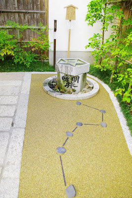 入口右邊的晴明井。根據官網資料:「由此井冒出的泉水乃山城名泉之一,有去病之效,水位曾一度下降而無法飲用,後來深挖此井方得復活。每年一到立春,神社的神職人員就會旋轉井口,使其朝向每年風水最好的方向,傳說茶道名人千利休曾使用此井之水泡茶。」這些我是不懂啦,但是看到那個北斗七星我就好興奮,好有除魔的fu啊!