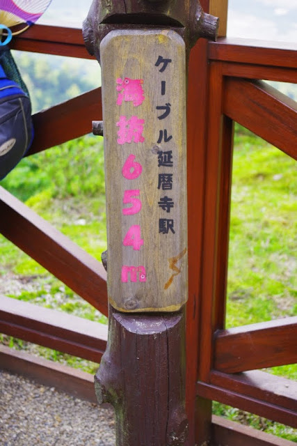 其實纜車站並不遠,印象中大概三十分鐘就走到了,不過因為我本人記性非常差,我想還是別參考的好。最上頭的大照片是纜車站旁觀景台的標高指示,海拔六百五十四公尺聽起來不如何,但要想我們可是已往下走了一段時間了,當年在山上蓋廟該是如何辛苦的一件事情,再說又曾經火焚燒而後重建,想想真是令人讚嘆。