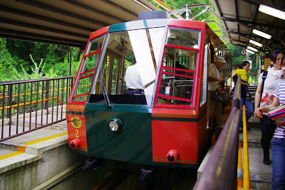 上山時搭公車比較優哉,但是新鮮感不高,因為我老人家以前念大學時每次回學校也都是搭公車上山,雖然說陽明山和比叡山不可相提並論,仰德大道的路況和日本的路況更是天差地遠,不過我老人家秉持著一貫護短的心情平心而論,差別真的不大,總之是在鳥語花香蟲鳴樹繞中到達目的地。至於纜車,那可就好玩得很了。